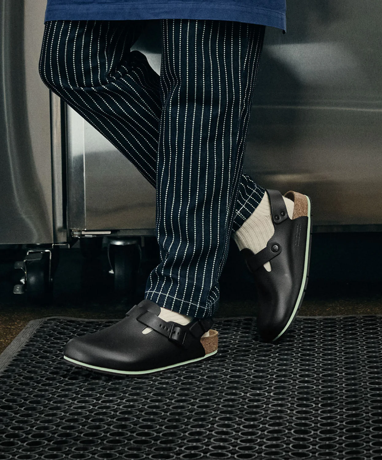 The Tokio Pro is a classic clog with hardworking features. Its slip-resistant TPU outsole helps keep you safe on your feet, with an adjustable backstrap for added security. Fluid-resistant, PU-coated natural leather is durable and easy to clean. The style is complete with legendary Birkenstock design elements, like a contoured cork-latex footbed that supports you through long hours on your feet.