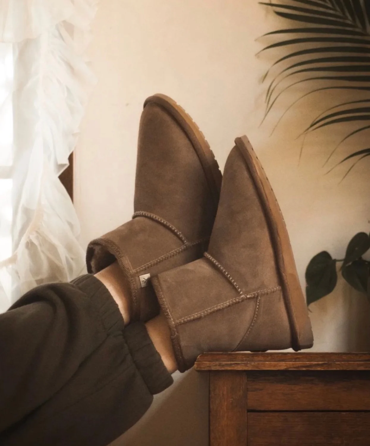 The Platinum Stinger Mini is a snug, water resistant, ankle-height boot made in Australia using natural, cushioning, cosy double-face sheepskin. A dual density sole unit with extra cushion EVA delivers an incredible feel-good-factor.